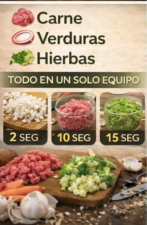 Con el Picador Eléctrico de Alimentos 4 Cuchillas, todo cambia: